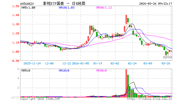 影视ETF国泰(516620)业绩比较基准为中证影视主题指数收益率,管理人为国泰基金管理有限公司,基金经理为王玉,成立(2021-10-20)以来回报为1.18%,近一个月回报为-14.57%。