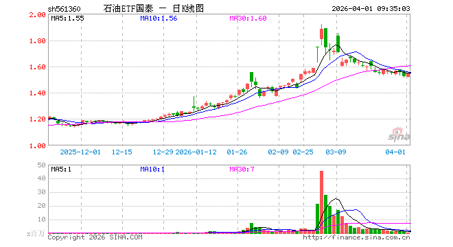 4月1日,石油ETF国泰(561360)开盘跌0.33%,报1.517元。石油ETF国泰(561360)重仓股方面,中国石油开盘跌1.48%,中国海油跌2.27%,中国石化涨0.00%,杰瑞股份涨4.34%,招商轮船涨1.96%,广汇能源跌1.65%,中远海能涨1.73%,恒力石化涨1.66%,荣盛石化涨2.08%,洲际油气跌0.88%。