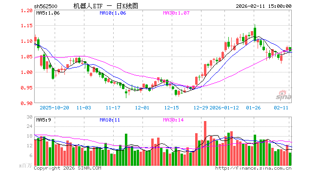 2月11日,机器人ETF(562500)跌1.11%,成交额8.19亿元。当日份额增加2.61亿份,最新份额为241.80亿份,近20个交易日份额增加2.96亿份。最新资产净值计算值为257.92亿元。