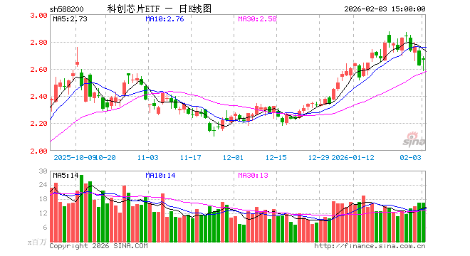 2月3日,科创芯片ETF(588200)涨1.52%,成交额44.10亿元。当日份额增加1.29亿份,最新份额为185.74亿份,近20个交易日份额增加15.54亿份。最新资产净值计算值为494.47亿元。