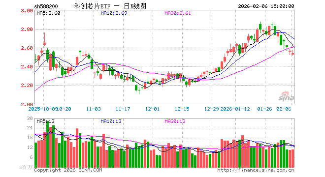 2月6日,科创芯片ETF(588200)跌1.09%,成交额27.10亿元。当日份额增加8400.00万份,最新份额为186.40亿份,近20个交易日份额增加18.96亿份。最新资产净值计算值为473.02亿元。