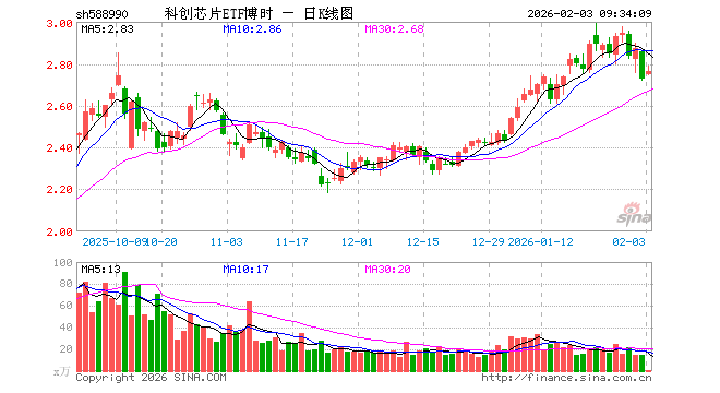 2月3日,科创芯片ETF博时(588990)开盘涨0.81%,报2.749元。科创芯片ETF博时(588990)重仓股方面,中芯国际开盘涨1.39%,海光信息涨1.94%,寒武纪涨1.05%,中微公司涨2.41%,澜起科技涨3.86%,拓荆科技涨2.02%,芯原股份涨2.96%,华虹公司涨2.80%,沪硅产业涨1.36%,东芯股份涨2.45%。