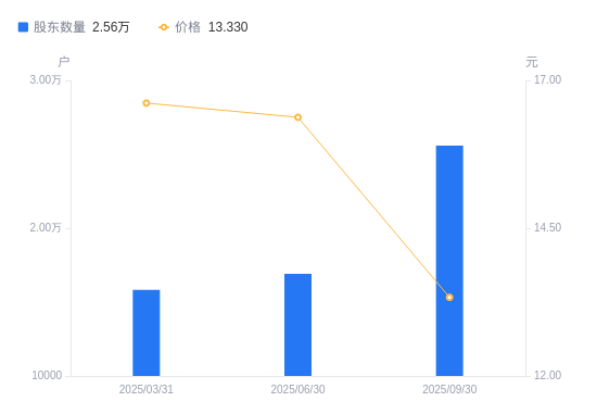 近一年(2024年12月31日至2025年12月31日),皖通高速A股股东户数从1.65万户,增加至1.76万户,增幅7.00%,区间股价下跌10.65%。