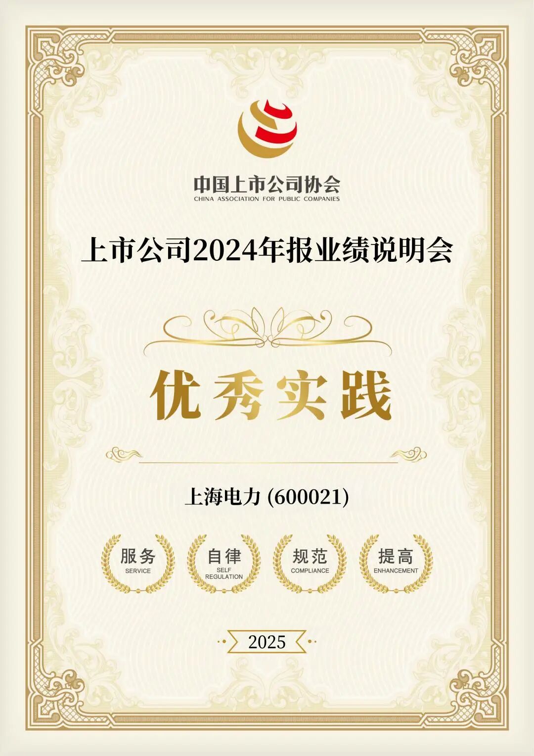 近日,上海电力(600021)荣获中国上市公司协会“2024年报业绩说明会优秀实践”。