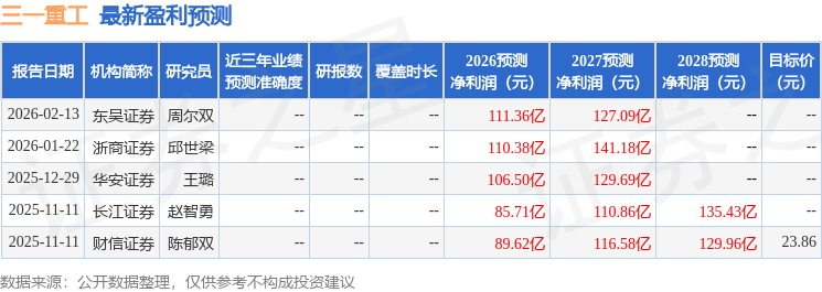 最新盈利预测明细如下: