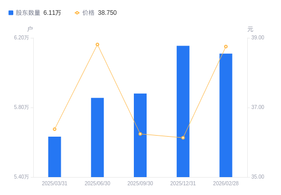 3月27日消息,数据显示,截至2025年12月31日,中直股份A股股东总户数为6.15万户,较上期(2025年9月30日)增加2741户,增幅4.66%。公司最新A股总股本为8.2亿股,其中流通A股6.69亿股,户均持有流通A股数量为1.09万股,较上期减少506.7股,降幅4.45%;户均持流通A股市值39.27万元,较上期减少1.96万元,降幅4.74%。
