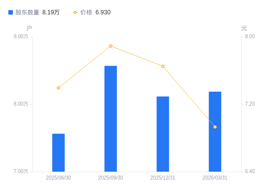 4月3日消息,数据显示,截至2025年12月31日,国投资本A股股东总户数为8.11万户,较上期(2025年9月30日)减少4548户,降幅5.31%。公司最新A股总股本为63.94亿股,其中流通A股63.94亿股,户均持有流通A股数量为7.88万股,较上期增加4183.42股,增幅5.61%;户均持流通A股市值60.29万元,较上期增加1.41万元,增幅2.39%。