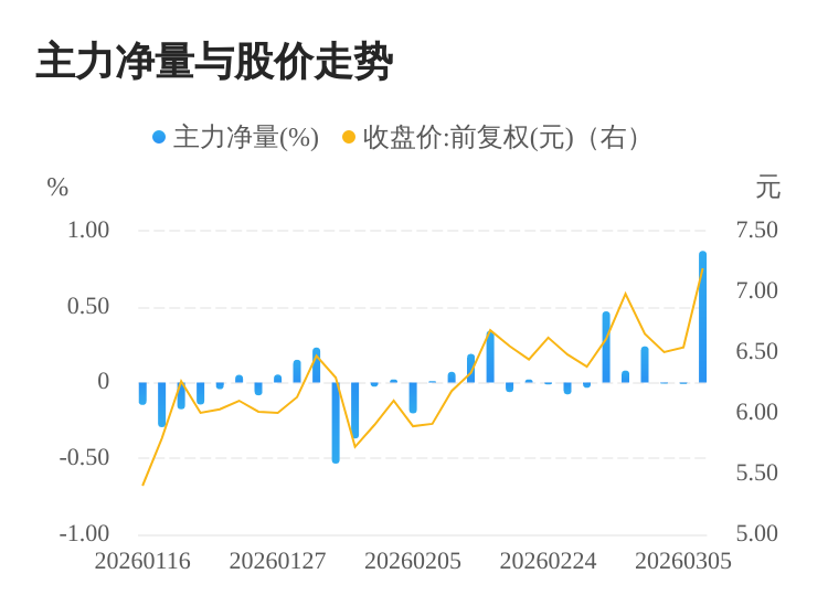 新疆天业(600075)03月06日主力(dde大单净额)净流入1.06亿元,涨跌幅为9.94%,主力净量(dde大单净额/流通股)为0.87%,两市排名116/5191。