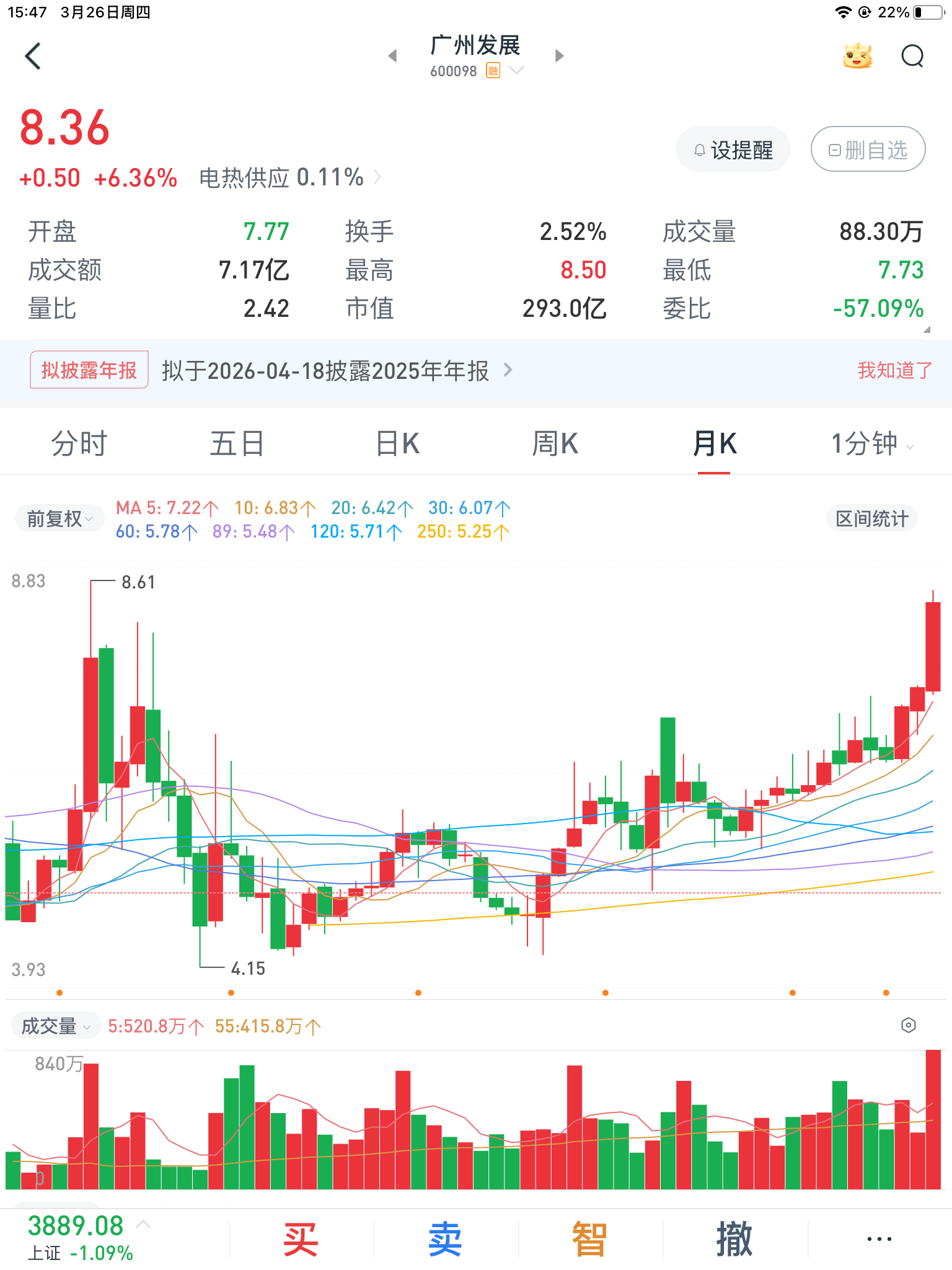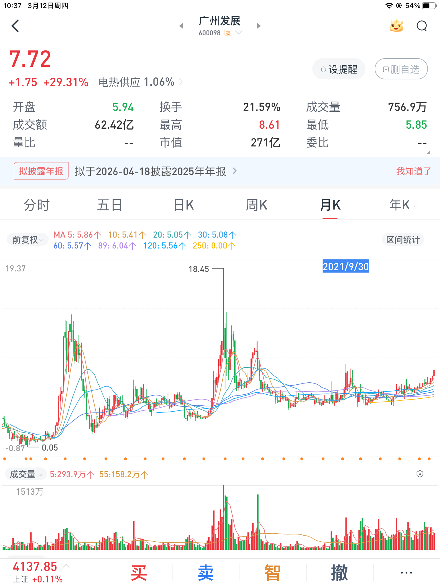 卖掉华天科技,开始做广州发展,目前仓位1/3。