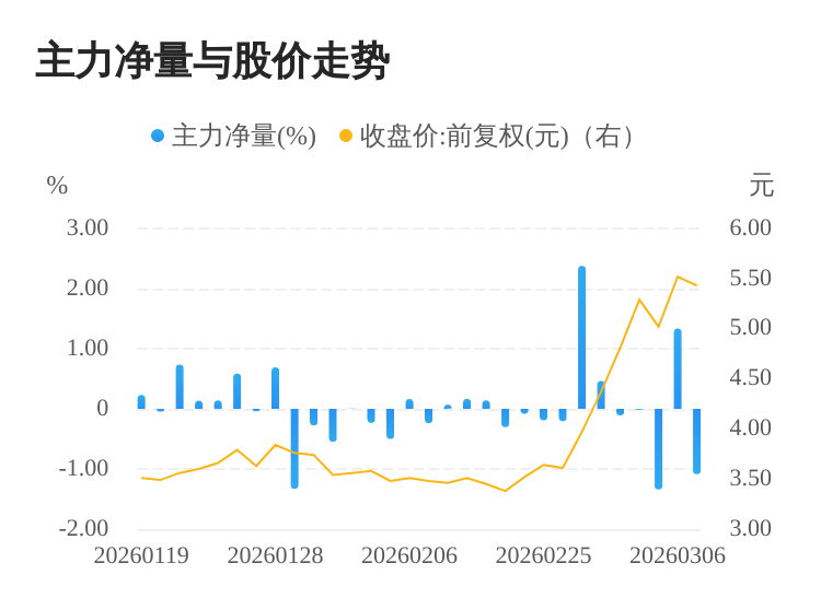 该股今日主力净量为负,且值较大,表明主力大幅流出,主动卖出明显多于主动买入。与此同时,今日换手率较高,主力抛售的嫌疑较大。投顾建议:投资者短期宜合理控制仓位,谨慎为佳。