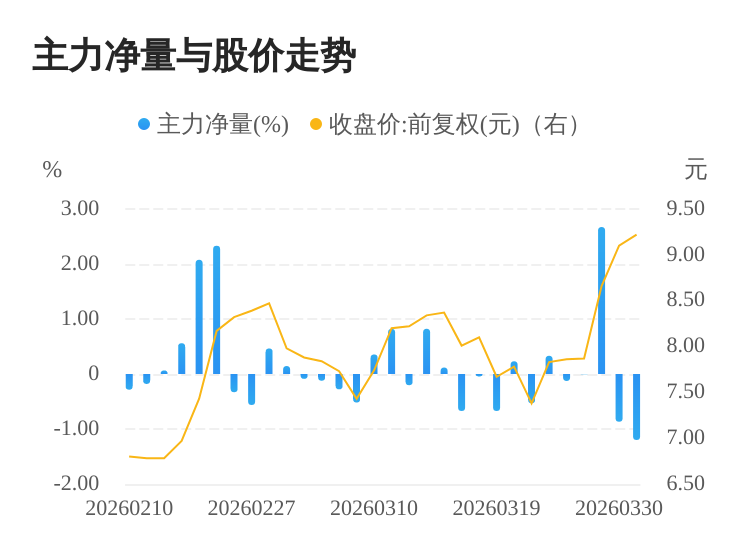 该股今日主力净量为负,且值较大,表明主力大幅流出,主动卖出明显多于主动买入。与此同时,今日换手率较高,主力抛售的嫌疑较大。投顾建议:投资者短期宜合理控制仓位,谨慎为佳。