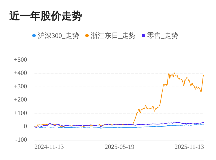 近一年公司股价累计上涨387.61%,同期沪深300指数上涨14.38%。