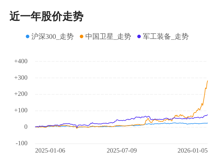 01月05日,中国卫星(600118)股价继续上涨。截至今日收盘,中国卫星上涨4.74%,收盘价为99.45元,盘中股价最高触及102.50元,股价创历史新高。