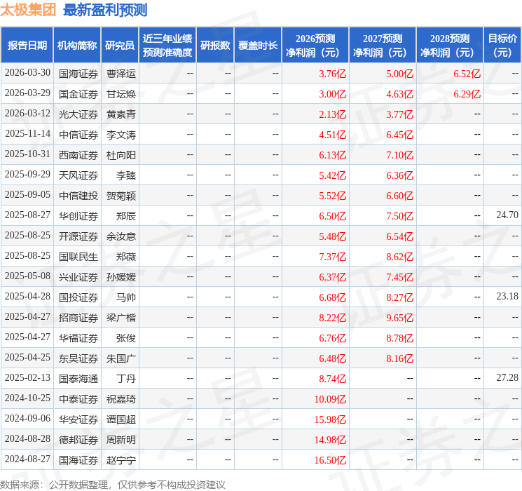 开源证券股份有限公司余汝意,巢舒然近期对太极集团(600129)进行研究并发布了研究报告《公司信息更新报告:2025年去库存强动销,期待营销转型赋能“十五五”》,给予太极集团买入评级。