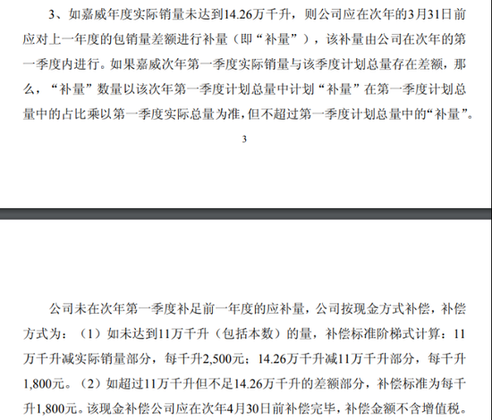 具体而言,2026年1月1日至2028年12月31日期间,重庆啤酒向重庆嘉威采购的啤酒量(即包销量)固定为每年14.26万千升,平均采购价4000元/千升(不含增值税);如重庆嘉威年度实际销量未达到14.26万千升,则重庆啤酒应在次年的3月31日前对上一年度的包销量差额进行补量。此外,自2026年1月1日起,重庆嘉威不再就包销啤酒向重庆啤酒支付或对外承担运费或销售费用。