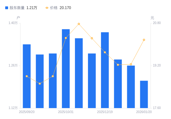 近一年(2025年3月31日至2026年1月20日),浪莎股份A股股东户数从9192户,增加至1.21万户,增幅31.64%,区间股价上涨38.78%。