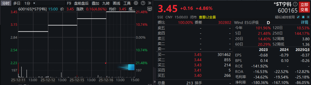 16日,此前已连续三个交易日涨停的*ST宁科(600165)(600105)股价再次“一字”涨停。