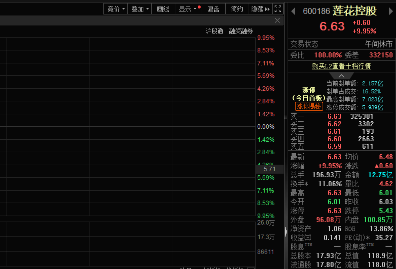 2月11日,莲花控股(600186)股价大涨。截至发稿,莲花控股股价涨停。