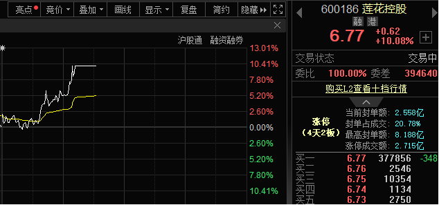 3月24日早盘,算力概念盘中震荡反弹,概念指数一度涨近2%。其中,莲花控股(600186)涨停。截至发稿,莲花控股股价报6.77元/股,涨幅10.08%,最高封单额超8亿元。