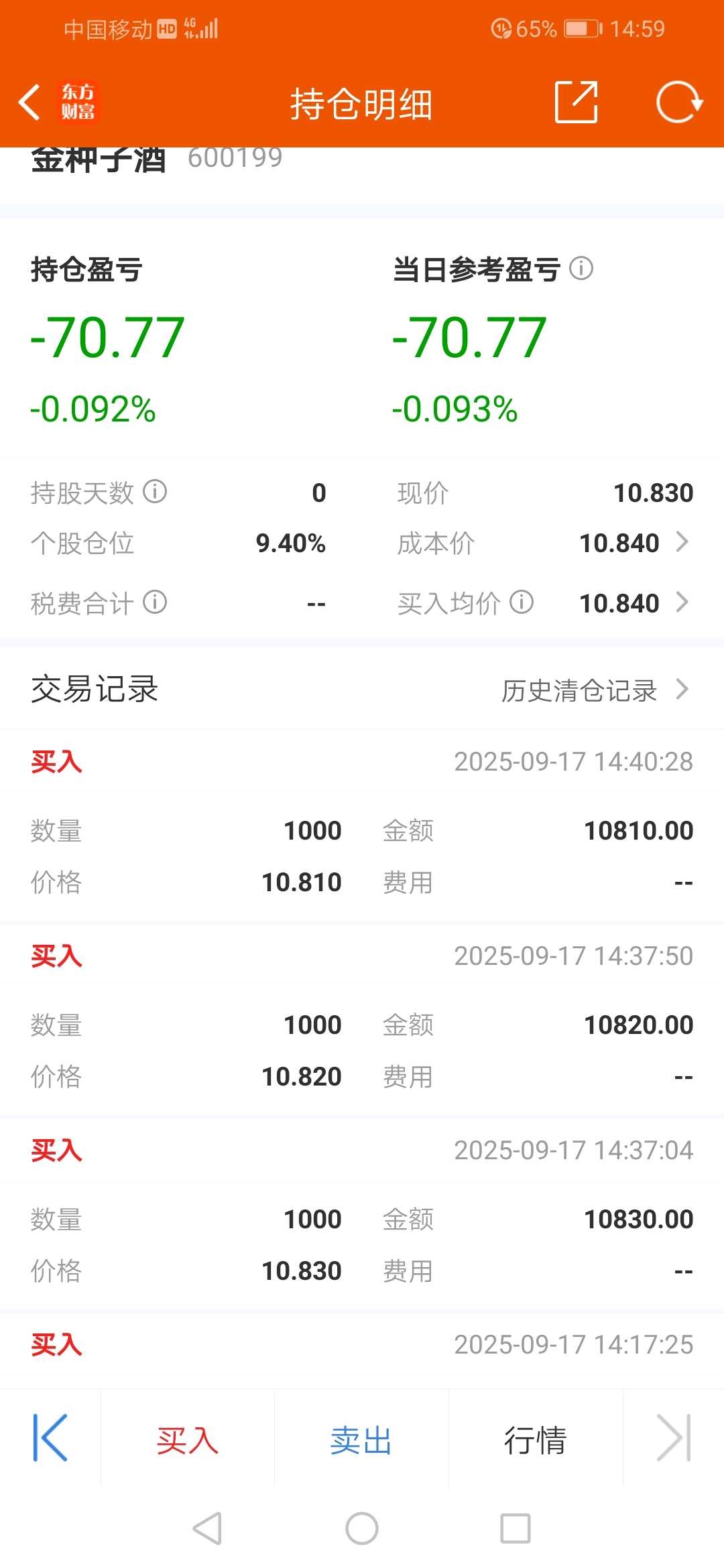 尾盘看了一圈也没什么可心动的,买了7000股金种子酒,弄点早餐费