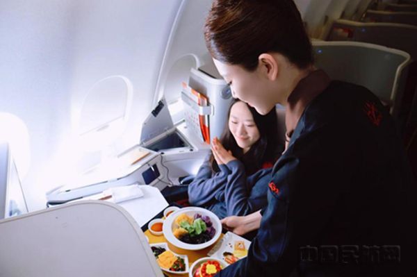 乘务员进行机上小年特色餐饮服务(海南航空供图)除了秀色可餐的美食,海南航空更精心策划了“南北小年逢,饺酒聚祯祥”小年主题航班活动,陪伴旅客开启温暖迎新之旅。客舱内喜庆的节日氛围、扑面而来鲜香的饺子、浓郁的酒香与主题航班的温馨氛围相融相依。云端之上,满是美好与欢喜,一张张灿烂的笑脸被瞬间定格,这不仅承载着节日的喜悦,更是海南航空与旅客之间的温暖共鸣。