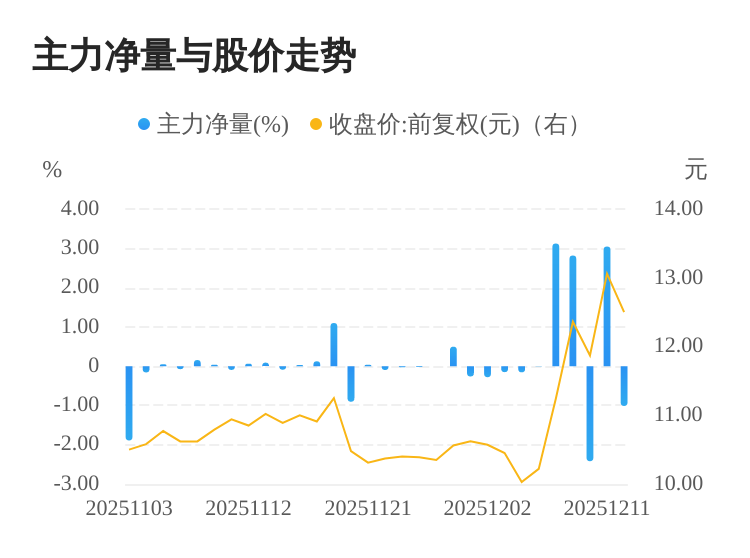 南京商旅(600250)12月11日主力(dde大单净额)净流出1.21亿元,涨跌幅为10.03%,主力净量(dde大单净额/流通股)为3.04%,两市排名13/5171。