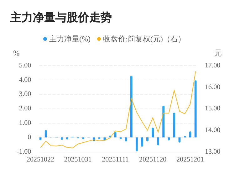 开开实业(600272)12月02日主力(dde大单净额)净流入1.06亿元,涨跌幅为9.99%,主力净量(dde大单净额/流通股)为3.97%,两市排名8/5169。