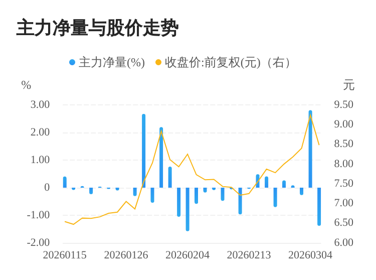 该股今日主力净量为负,且值较大,表明主力大幅流出,主动卖出明显多于主动买入。与此同时,今日换手率较高,主力抛售的嫌疑较大。投顾建议:投资者短期宜合理控制仓位,谨慎为佳。