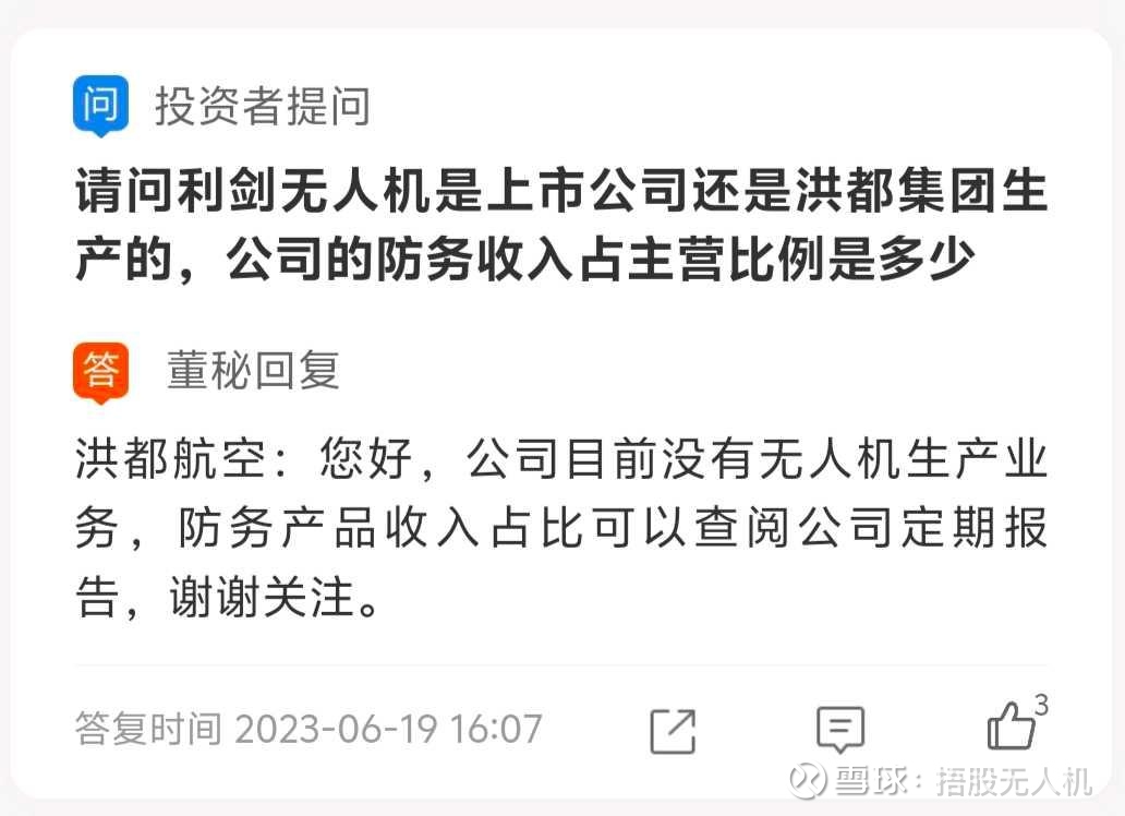 洪都航空上市公司没有无人机,洪都董秘说的: