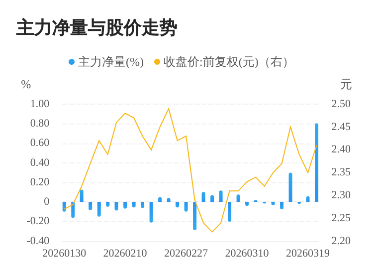 津投城开(600322)03月20日主力(dde大单净额)净流入2155.40万元,涨跌幅为2.55%,主力净量(dde大单净额/流通股)为0.80%,两市排名80/5191。