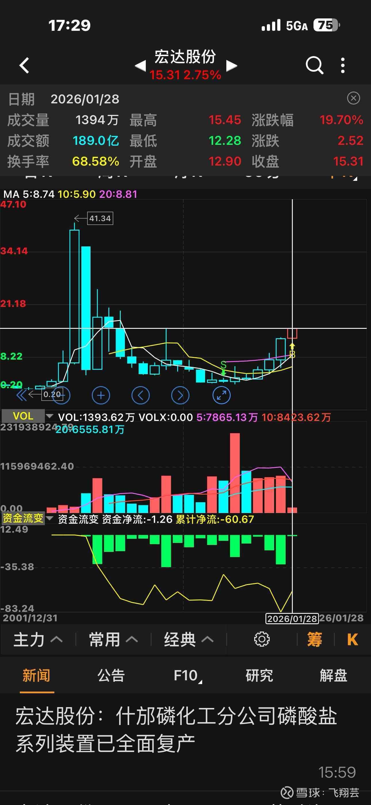 今天,宏达股份突破了15元。难得啊!我去年中大幅建仓的时候,当时一直就推测,拿到采矿证可能会上15块,但是叠加近半年来的金价\铜价暴涨,在没有拿到采矿证就已经上了15元了。这样的话,拿到采矿证突破20的概率还是很大。但是介于个人的操作习惯,达到预期目标就会减仓了。...