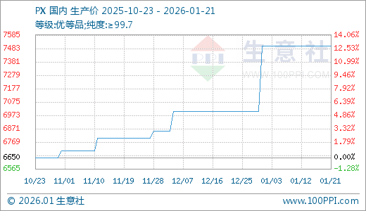据生意社监测,PX01月21日最新价格7500.00元/吨,最近60天上涨10.29%。