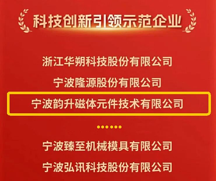 昨日(3月29日),2026年北仑区经济高质量发展大会举行。会议重磅发布了五大榜单,韵升凭借在科技创新方面的突出表现,被授予“科技创新引领企业”称号。