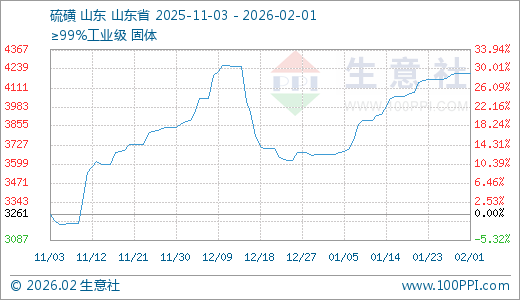 据生意社监测,硫磺02月01日最新价格4210.00元/吨,最近30天上涨15.00%。