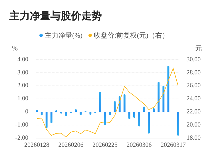 该股今日主力净量为负,且值较大,表明主力大幅流出,主动卖出明显多于主动买入。与此同时,今日换手率较高,主力抛售的嫌疑较大。投顾建议:投资者短期宜合理控制仓位,谨慎为佳。