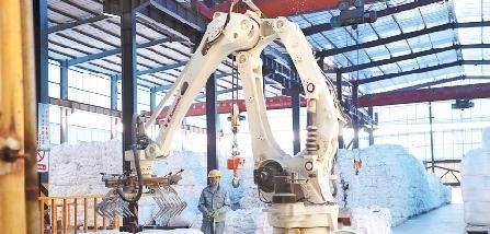 红星锰业生产车间,机械臂在打包产品。 贵州日报天眼新闻记者 葛永智 摄贵州日报天眼新闻记者 葛永智