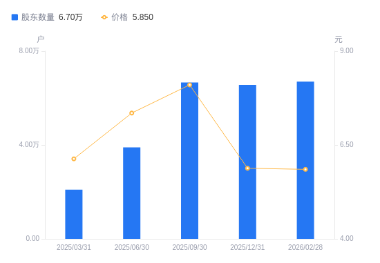 近一年(2024年12月31日至2025年12月31日),汉马科技A股股东户数从2.02万户,增加至6.56万户,增幅225.56%,区间股价上涨7.50%。