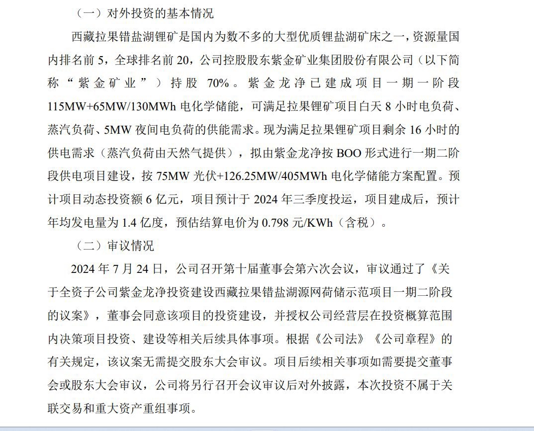 : 拉果错的环评报告里,一期项目2万吨合计投资金额为37亿,龙净环保的BOO模式,年发电量1.4亿度,结算价0.79元/kwh,总计电费一亿元朝上