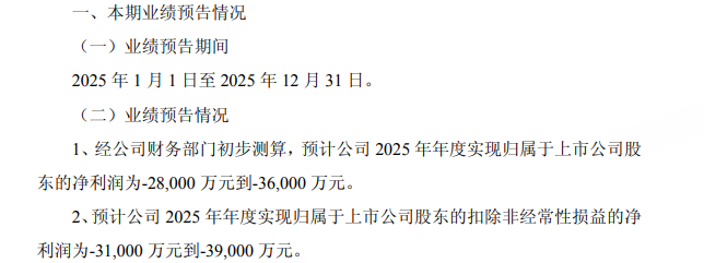 1月20日,红豆股份公告,预计2025年归母净利润为-2.8亿元至-3.60亿元,扣非净利润-3.1亿元至-3.90亿元。