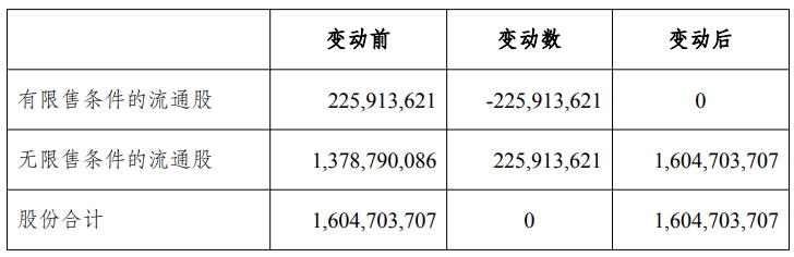 此次限售股的发行对象为阿拉尔国投公司,认购的股份自非公开发行结束之日起36个月内不得转让。公告显示,阿拉尔国投公司持有限售股数量为2.26亿股,占公司总股本的14.08%。本次解除限售股份上市流通前后股本变动结构如下: