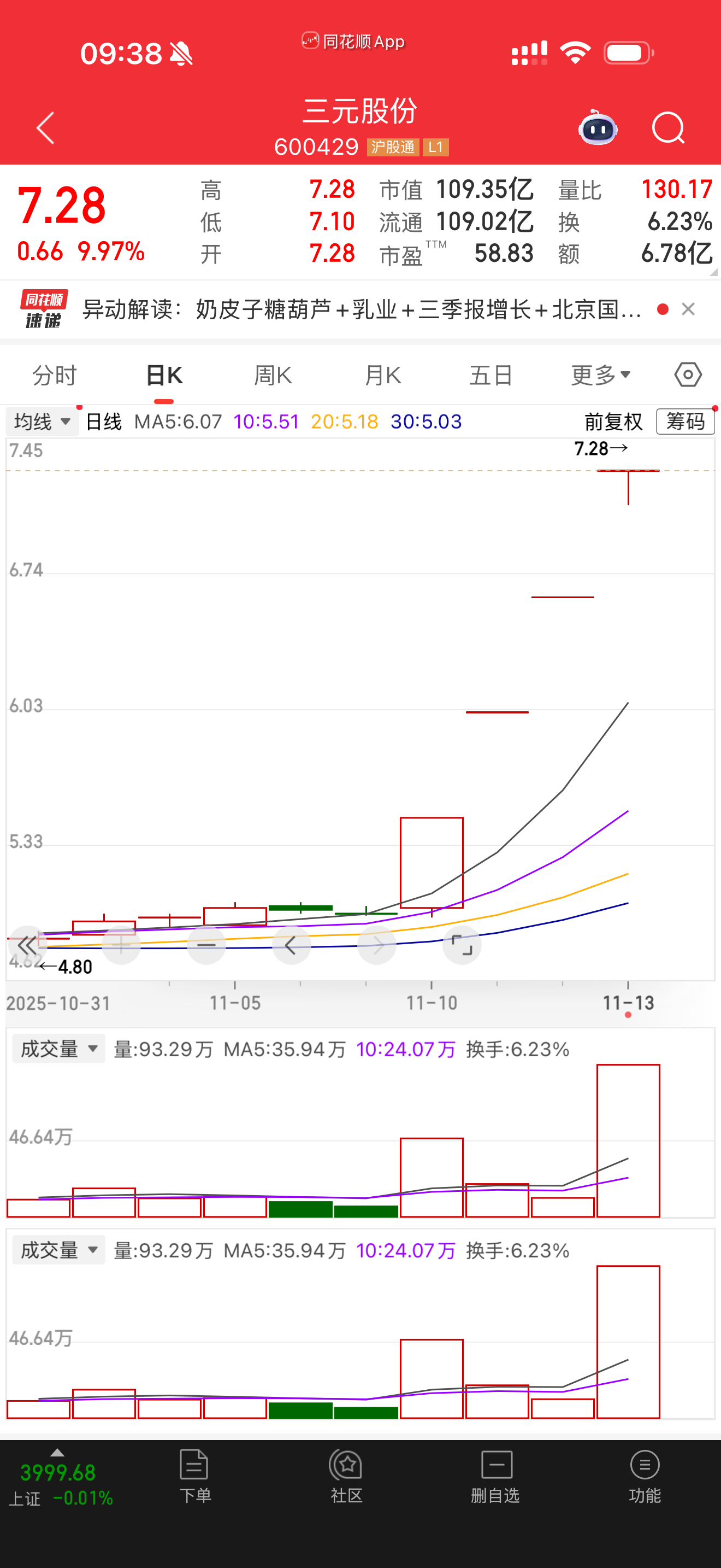 11月13日开盘,三元股份(600429)(600429)股价再次涨停,股价走出“4连板”。在9时37分,其涨停被短暂打开,随即快速封住涨停。