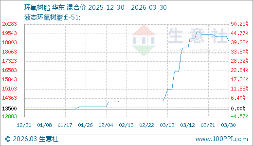 环氧树脂03月30日最新价格18900.00元/吨,最近30天上涨33.41%,60天上涨38.29%,90天上涨40.00%。