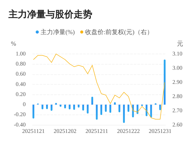 龙元建设(600491)01月05日主力(dde大单净额)净流入3869.64万元,涨跌幅为9.85%,主力净量(dde大单净额/流通股)为0.89%,两市排名137/5182。