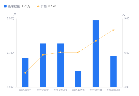 3月30日消息,数据显示,截至2025年12月31日,凤竹纺织A股股东总户数为1.99万户,较上期(2025年9月30日)增加3707户,增幅22.91%。公司最新A股总股本为2.72亿股,其中流通A股2.72亿股,户均持有流通A股数量为1.37万股,较上期减少3133.95股,降幅18.64%;户均持流通A股市值10.09万元,较上期减少9006.56元,降幅8.19%。