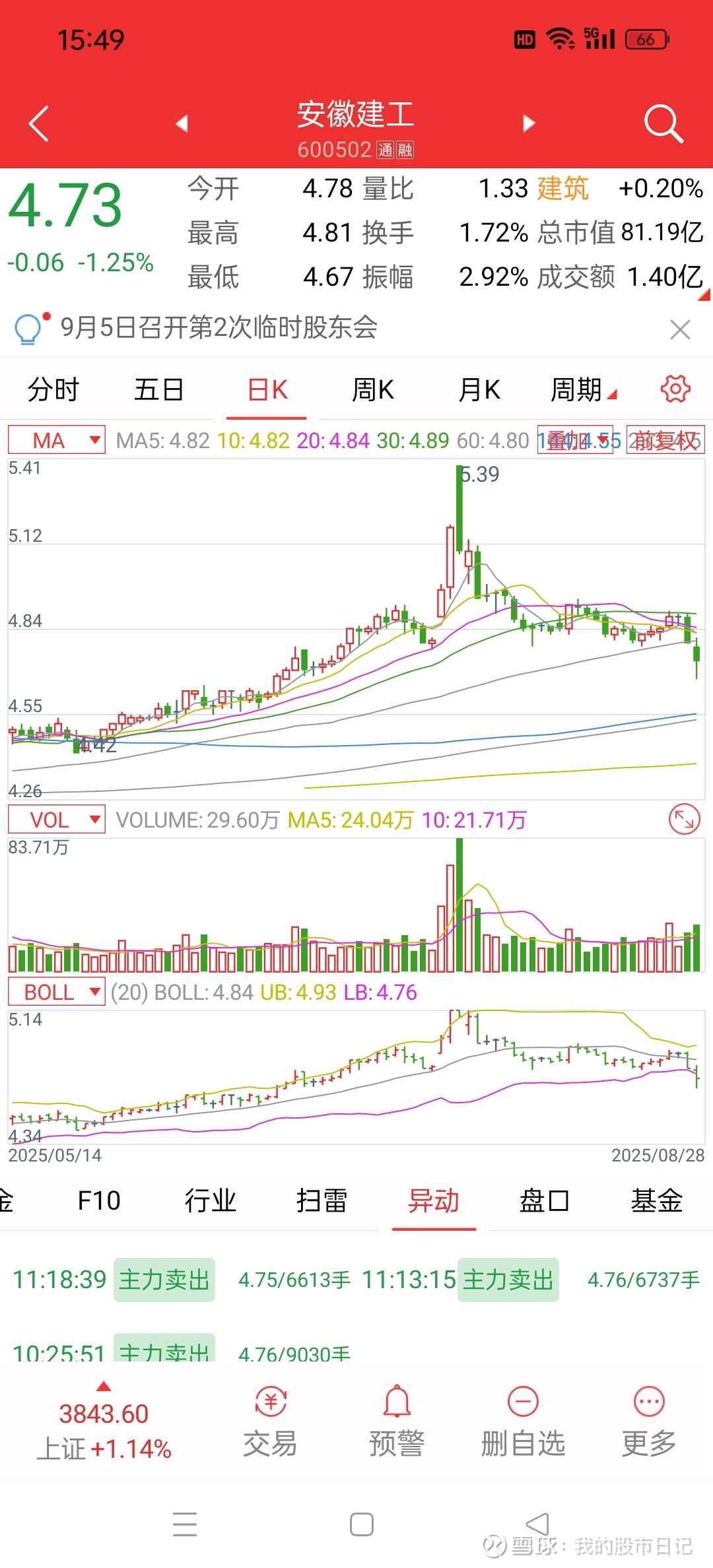 4.92继续小幅出货。当前成本3.43,浮盈43%。