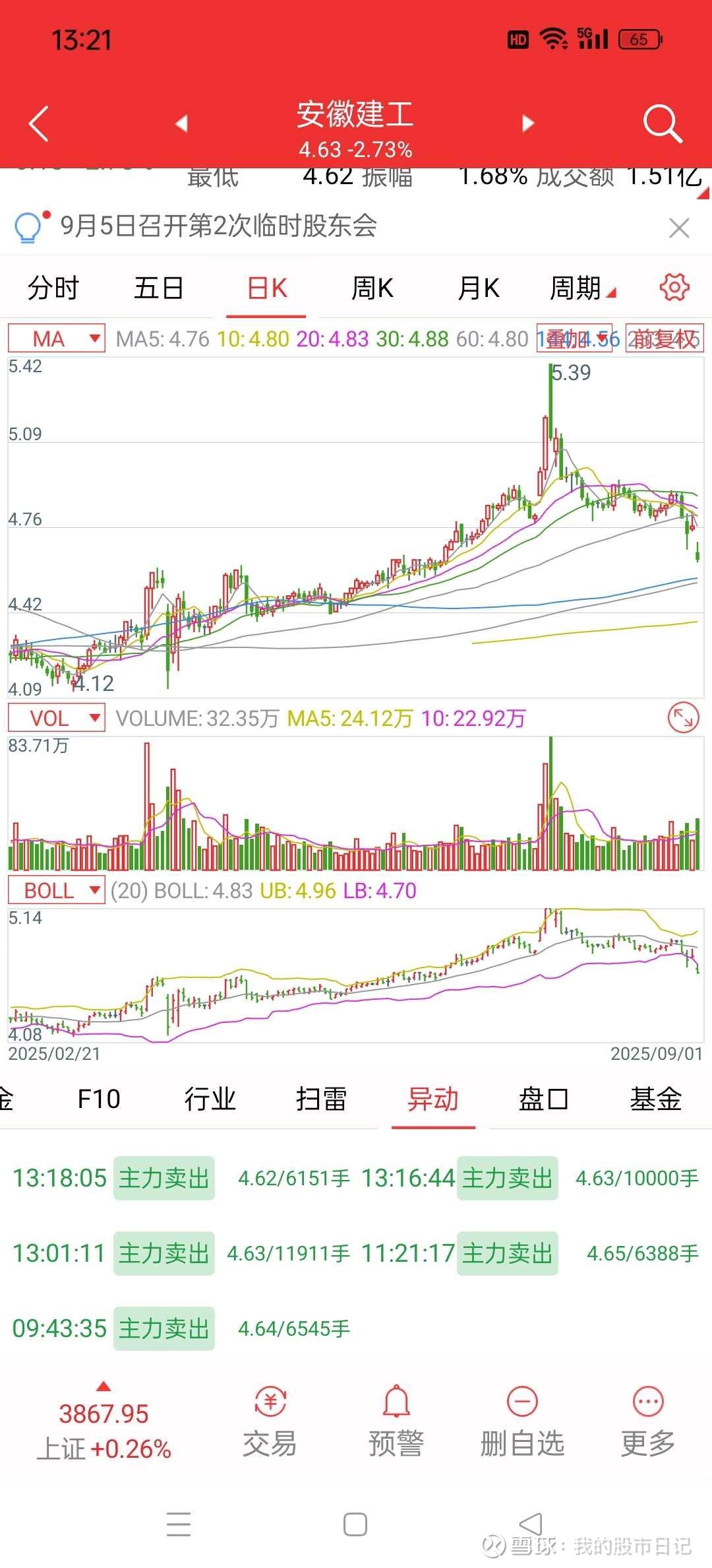 安徽建工7月23日主力大出货,到了今天这个位置主力还在出货!!垃圾股就是垃圾股,出货出不完呐