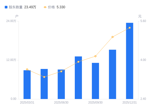 2月2日消息,数据显示,截至2026年1月30日,海南机场A股股东总户数为20.7万户,较上期(2025年12月31日)减少2.79万户,降幅11.88%。公司最新A股总股本为114.25亿股,其中流通A股91.76亿股,户均持有流通A股数量为4.43万股,较上期增加5268.73股,增幅13.49%;户均持流通A股市值19.86万元,较上期减少9605.14元,降幅4.61%。