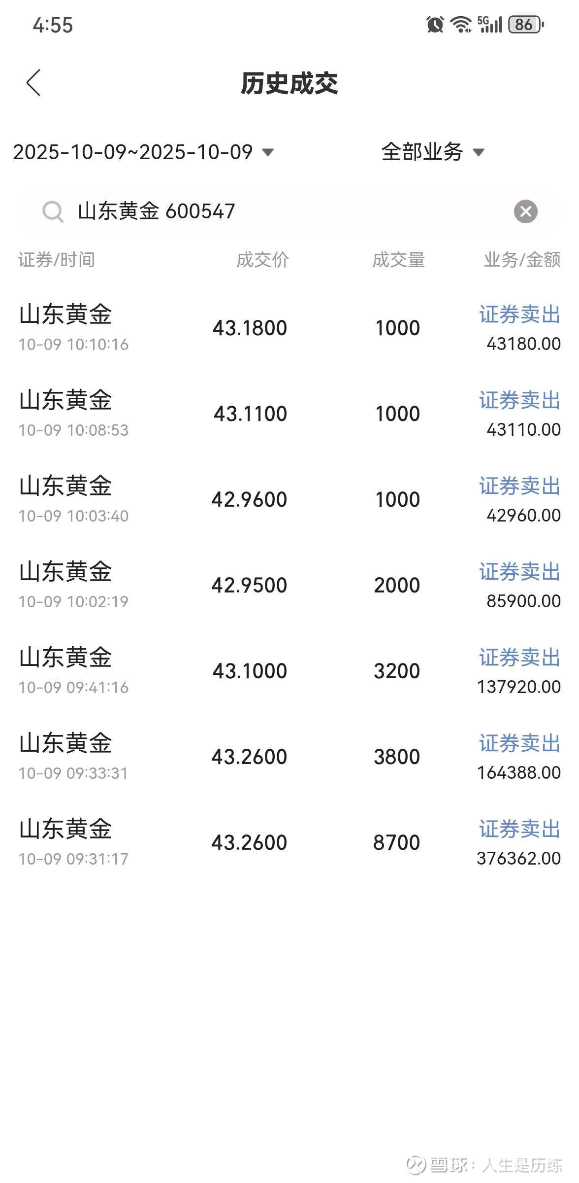 为了避免这篇帖子被人说成马后炮,还是发一下昨天减仓黄金股和中矿资源的成交。个人昨日因为白银最近加速上涨,美元指数上涨,铜股连续陡峭上涨,而港股黄金股却是回调走势,所以在昨日盘中减仓山东黄金A和中矿资源,目的是锁定盈利降融资杠杆。