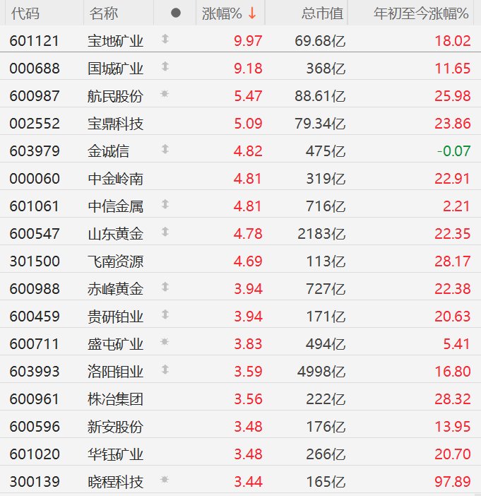 格隆汇2月11日|A股市场黄金概念股走强,其中,宝地矿业涨停,国城矿业涨超9%,航民股份、宝鼎科技涨超5%,金诚信、中金岭南、中信金属、山东黄金、飞南资源涨超4%。