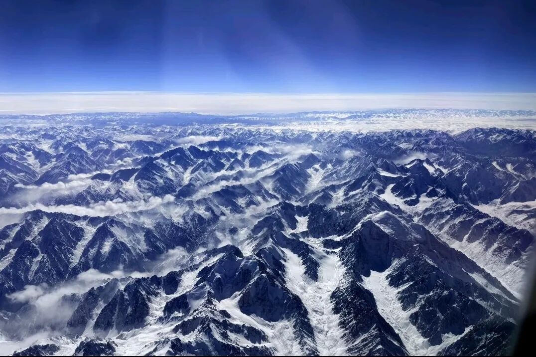 万米高空之上,舷窗如同一幅画框,将横亘天地的天山盛景收纳眼底。连绵雪峰指向苍穹,恰似大地挺起的不屈脊梁。凝望着舷窗下的苍茫大地,这里,便是我们即将开启找矿攻坚的地方。